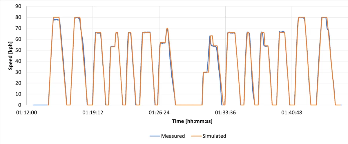 Vergleich des simulierten und des gemessenen Geschwindigkeitsprofil für die Validation des Simulationsmodell.