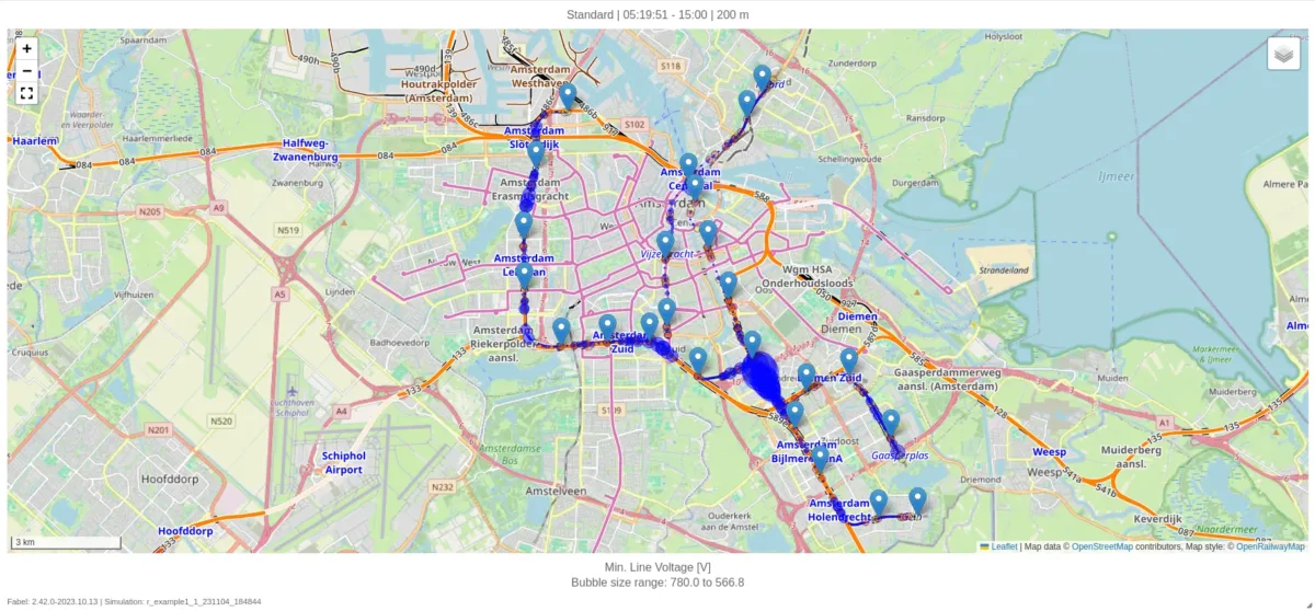 Dies hat GVB dazu strategisch bewegt, mit Fabel ein Simulationswerkzeug zur Analyse des Energieversorgungsnetzes einzuführen. Mit unserer «Software as a Service»-Lösung werden sowohl die bestehende Infrastruktur als auch die zukünftigen Projekte modelliert, was der Grundlage für die Planung und Entscheidungsfindung dient. Mittels Simulationsrechnungen möchte GVB detaillierte Erkenntnisse in Bezug auf Energieverbrauch, Fahrplananpassungen, Bremsenergierückgewinnung und zukünftige Wachstumsszenarien gewinnen, um den Weg für ein robustes und nachhaltiges Metronetz zu ebnen.