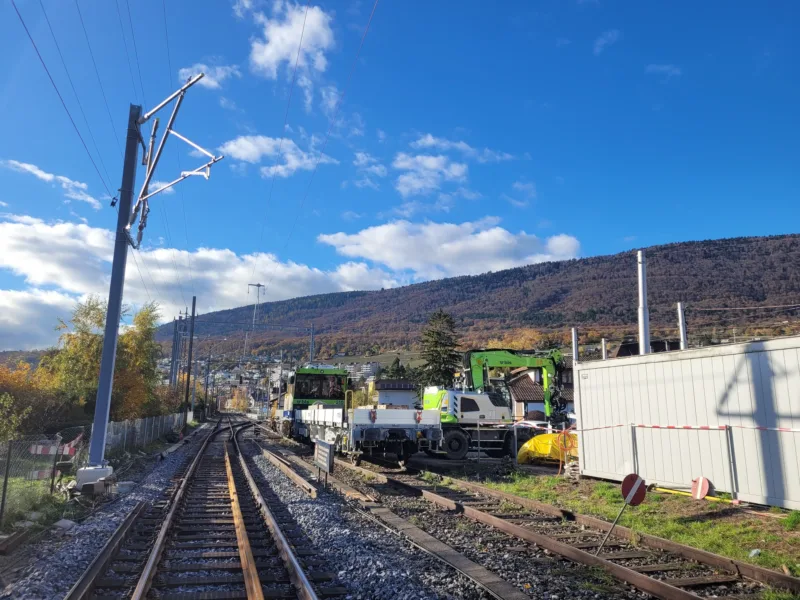 The main work was carried out during a two-week total closure of the line between Ins and Neuchâtel. The coordination of the work and interfaces between the various construction sites on the section was crucial during this period.