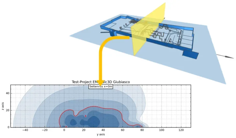 EMFCALC stands out thanks to its ability to perform spatial calculations in two-dimensional space. This enables a precise magnetic field calculation based on the current profiles of the electrical installations. Taking the spatial aspect into account is important for analysing the magnetic field distribution in different planes and directions, which ensures comprehensive insight into the electromagnetic environment.